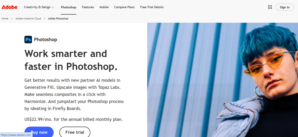 | Adobe Photoshop | Professional image editing | $23/mo (Photography Plan) | 7-day trial | 9.5 |